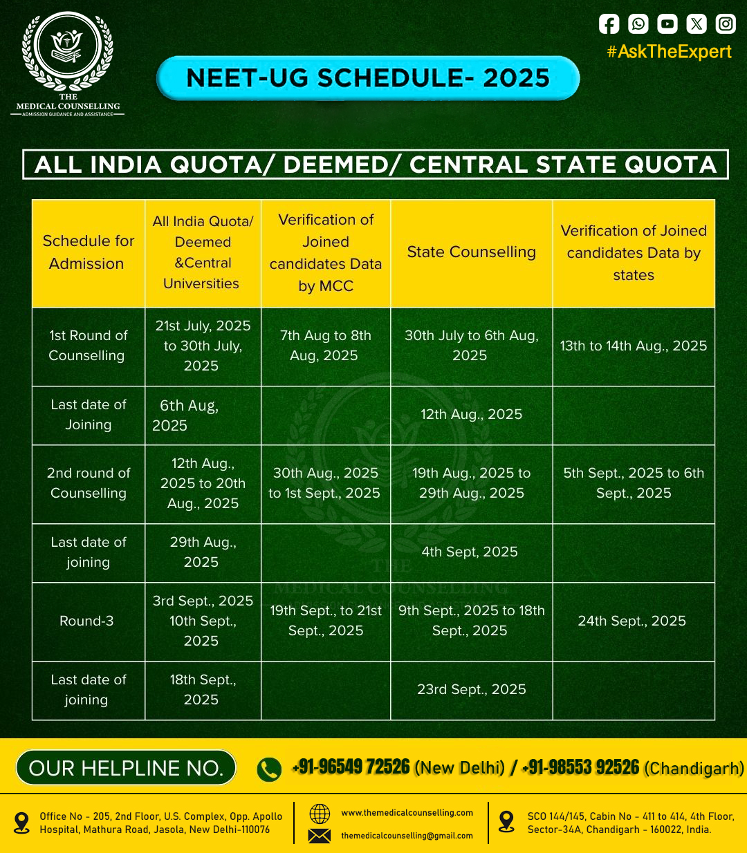 Get ready to secure your MBBS seat in All India Quota / Deemed / Central Universities / State Quota.